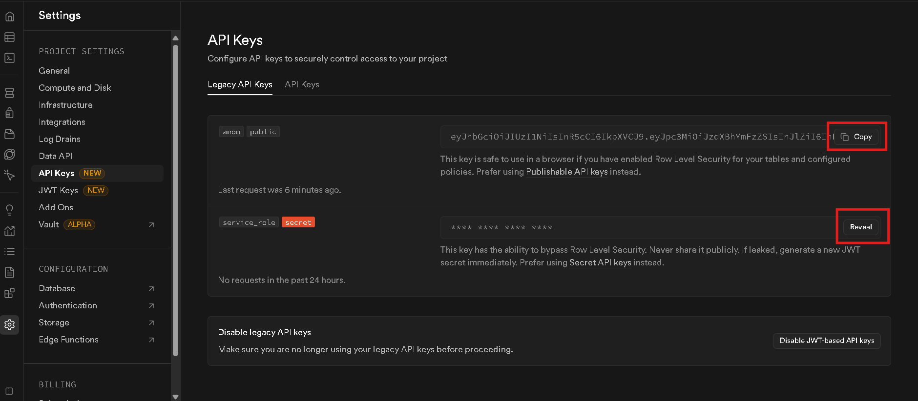 This blog shows exactly where to find the Supabase API keys in the dashboard and how to configure them in your project. Follow the steps below to safely access and store your keys.